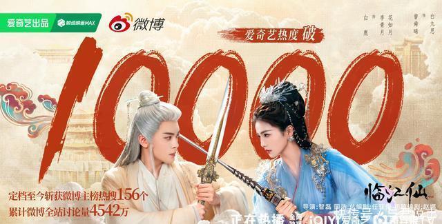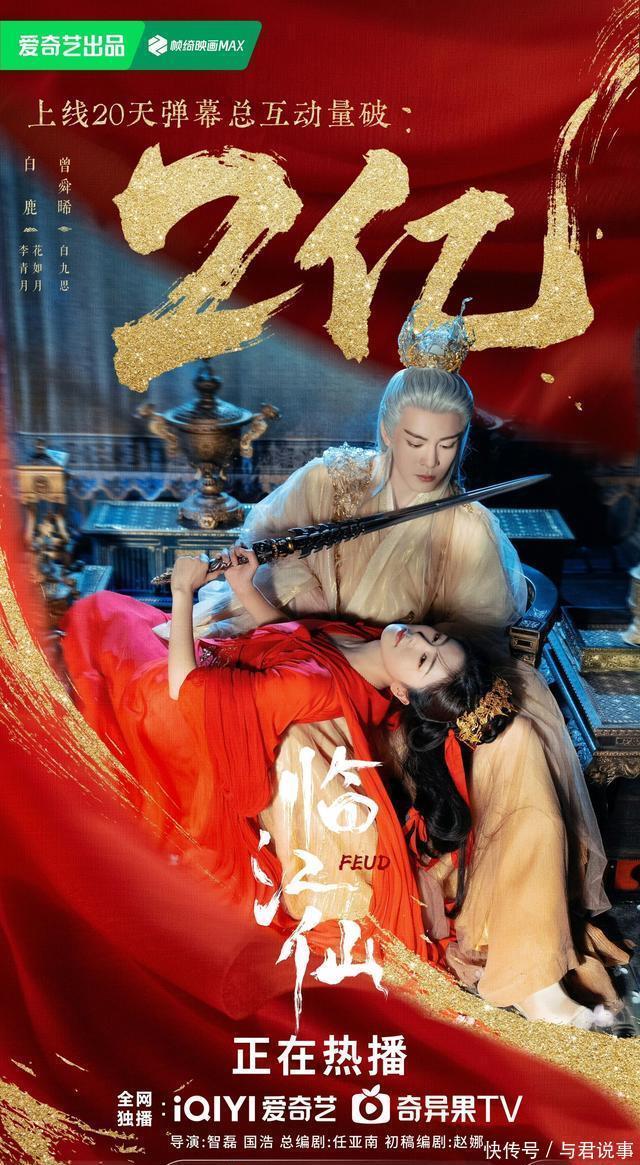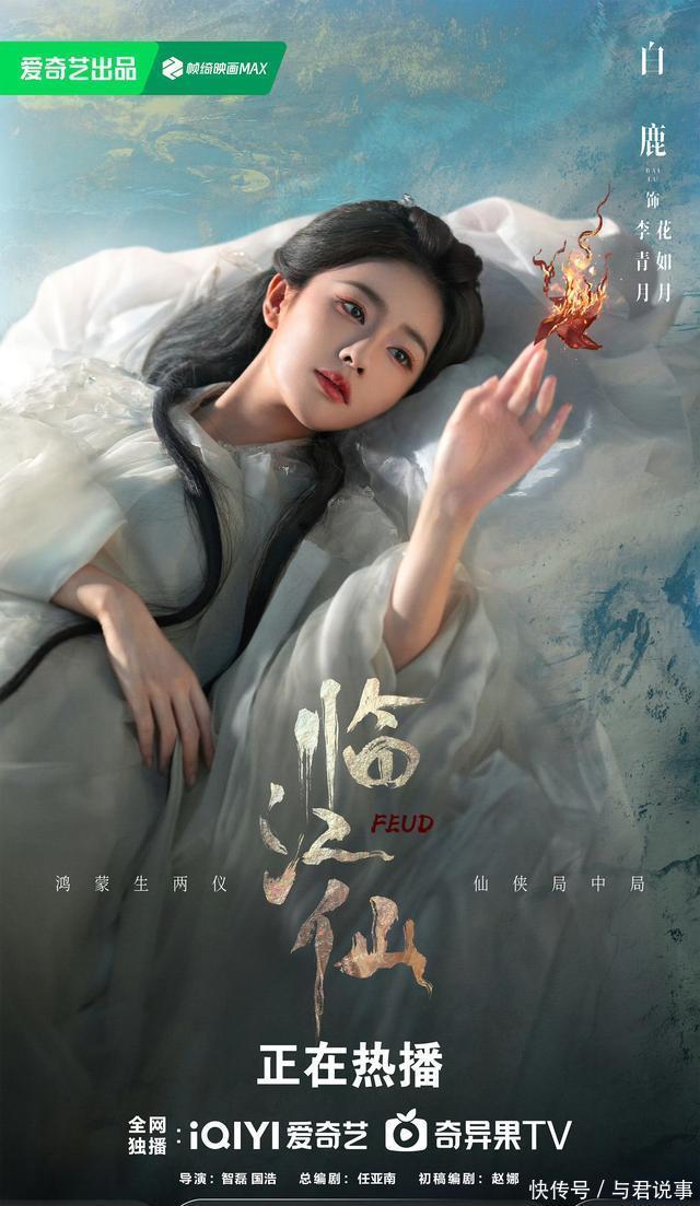 三、爱奇艺《临江仙》 白鹿、曾舜晞、何瑞贤、陈鑫海领衔主演的古装仙侠剧。 于正《临江仙》开创了新型仙侠赛道,“杀夫证道”反套路叙事,三婚三离的血色浪漫,将“仙侠虐恋”玩出了新高度,剧中反套路情节,融入时空循环、身份替身等悬疑元素,呈现出“局中局”的局面,将爱恨交织的破碎感拉满! 白鹿继《长月烬明》后再演仙侠剧,将花如月/李青月两个角色表演得收放自如。曾舜晞则成功摆脱了“甜宠专业户”的标签,将白九思的矛盾复杂心理演绎得层次递进。 爱奇艺热度峰值10008,累计有效播放量16.8亿,登顶暑期档爱情剧热度、有效播放双榜冠。