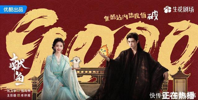 六、优酷视频《献鱼》 陈飞宇、王影璐领衔主演33集古装仙侠剧。 该剧改编自扶华的古言小说《向师祖献上咸鱼》 《献鱼》绝对是“仙侠职场”的神来之笔!把现代牛马上班“摸鱼的哲学”搬进仙界中,疯批师祖司马焦“大魔头”与躺平的“咸鱼”廖停雁,两者较量充满喜感。 廖停雁拒绝加班、要求双休、反对职场PUA,疯批“满级大佬”师祖,两者反差萌太有实质感了! 陈飞宇演的司马焦“美强惨”与王影璐演的灵动“咸鱼少女”,两者反差CP扭转口碑与热度,成为中小成本项目“有效剧集”典范,剧集在优酷站内热度最高达9748,却在大结局超点日热度仅8200左右,呈现高开低走局势,全网累计播放量达8亿。